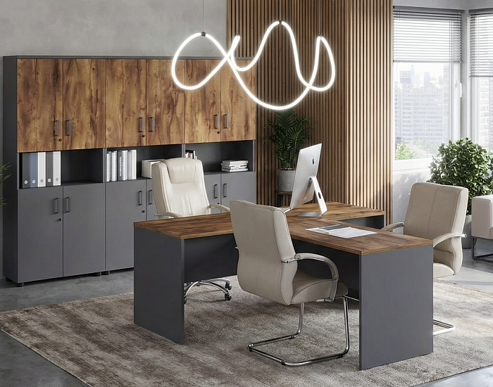 Помимо стандартных кабинетов, мы можем реализовать индивидуальную мебель руководителя по Вашему техническому заданию. За годы работы на рынке мебели мы реализовали сотни проектов кабинетов директора, включая индивидуальные проекты. Ознакомьтесь с нами портфолио и доверьтесь нашим дизайнерам, мы учтем все Ваши пожелания.